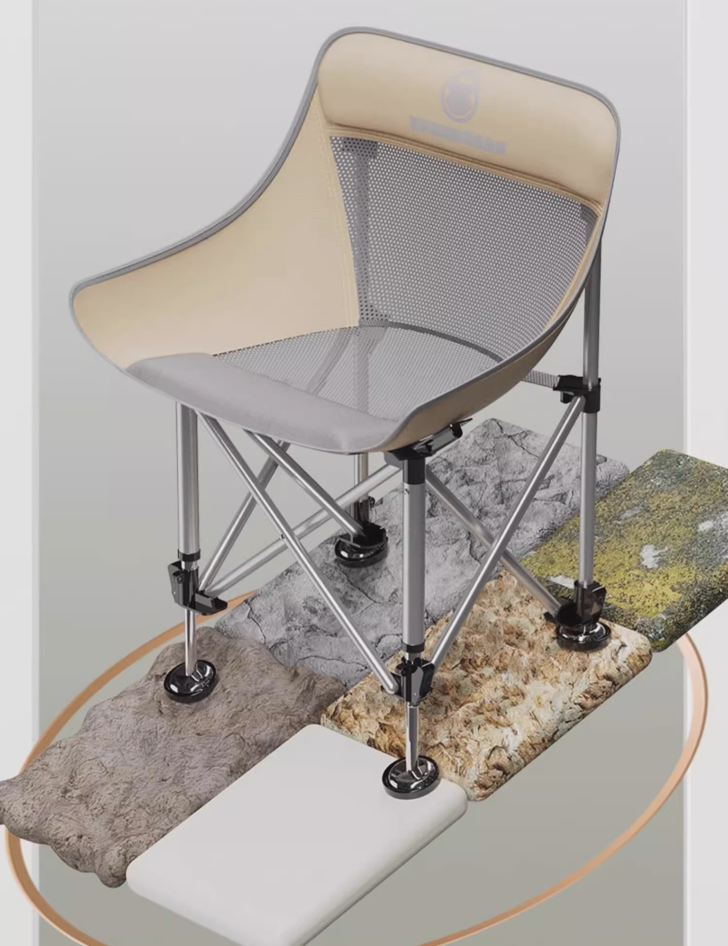 Mỗi chân ghế có núm xoay tăng chỉnh, giúp dễ dàng cân bằng khi ngồi trên đất dốc, nền không phẳng.✅ Thiết kế thoáng khí, êm ái: